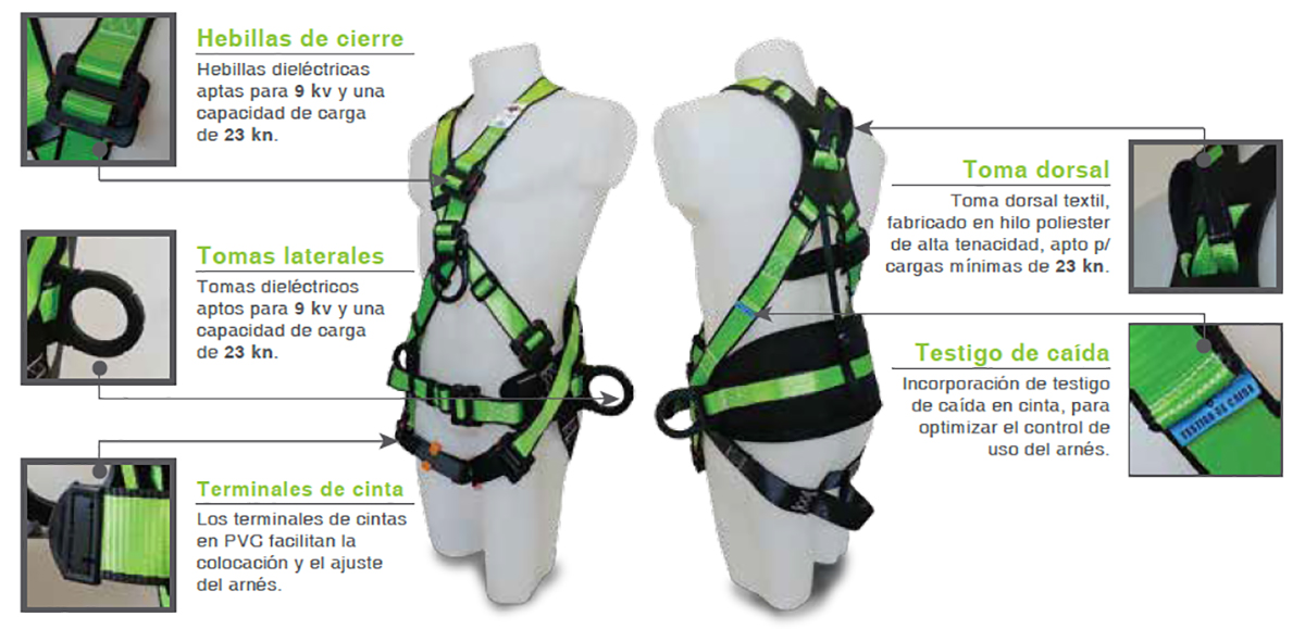 Toma anticaídas dorsal + toma para rescatismo frontal + sujeción y posicionamiento + DIELÉCTRICO