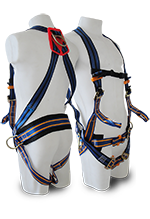Arnés completo con 3 puntos de enganche, toma frontal. Regulable en hombros y piernas.