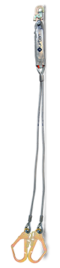 Cola de amarre doble en cable de acero recubierto con PVC de 1,5m con amortiguador y mosquetón de 55mm en extremos.