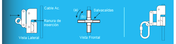 El/Los soportes intermedios se instalan CADA 10 metros a lo largo de la escalera sobre un peldaño de la misma. La finalidad de estos soportes NO es de resistencia, sino limitar la flecha del cable permitiendo una operación segura del sistema. El operario NO se desvincula en ningún momento de la línea de vida.