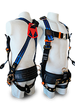 Arnés completo con 6 puntos de enganche, regulable en hombros y piernas con refuerzo lumbar.