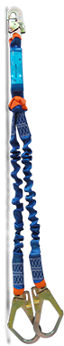 Cola de amarre doble elastizada de 1,5m con amortiguador y mosquetón de 55mm en extremos