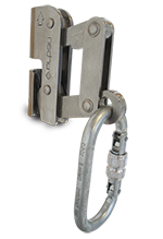 Salvacaídas para cable de acero en líneas de vida verticales con mosquetón doble traba.
